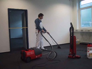 Teppichbodenreinigung im Sprühextraktionsverfahren.